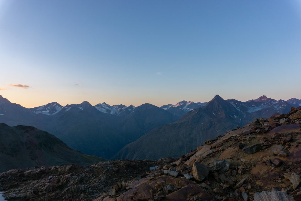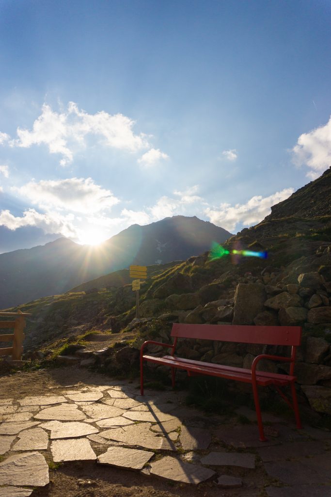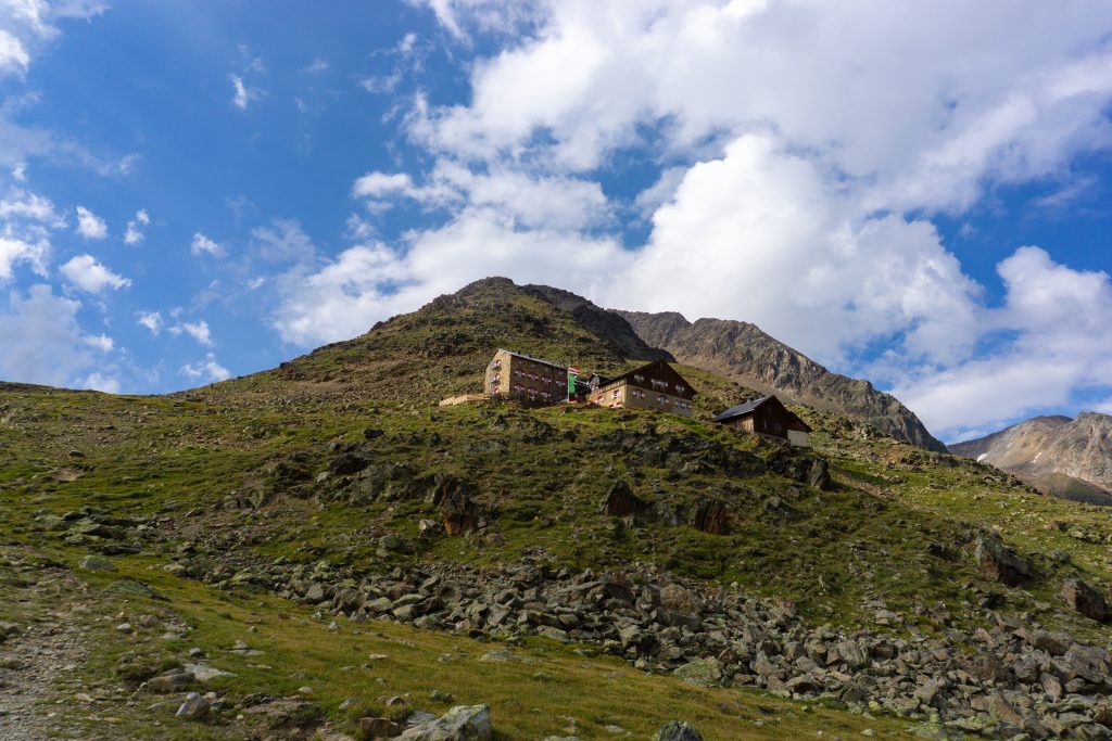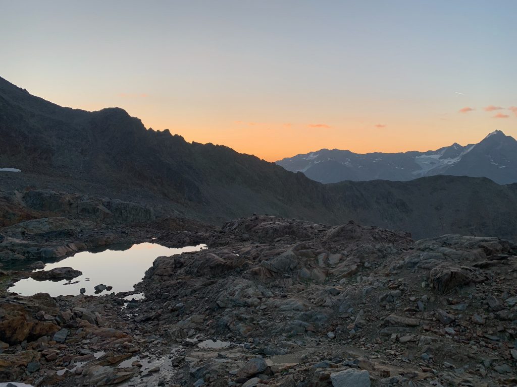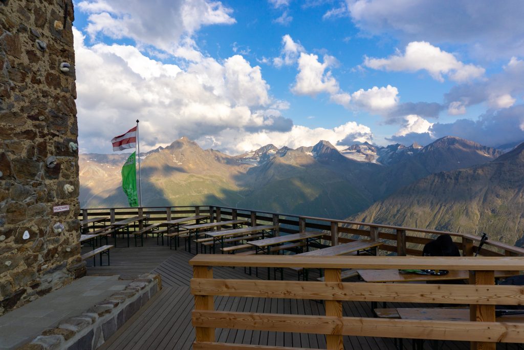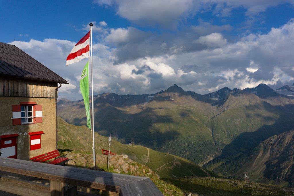 Die Breslauer Hütte bietet ein tolles Bergpanorama und wir haben den Sonnenuntergang auf der Terasse draußen genossen, bevor es Abendessen gab und wir es uns schließlich im Matratzenlager bequem gemacht haben.