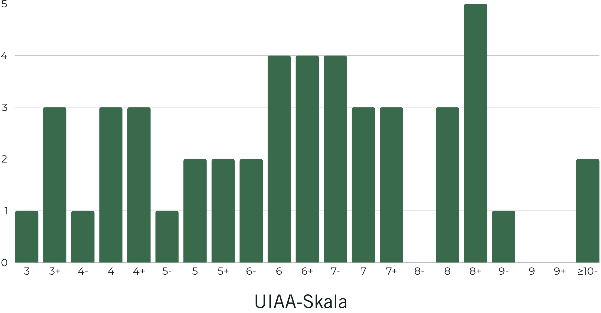 | Schwierigkeitsgrad | 3 bis 10+/11- |
